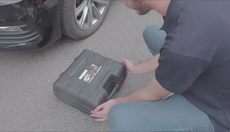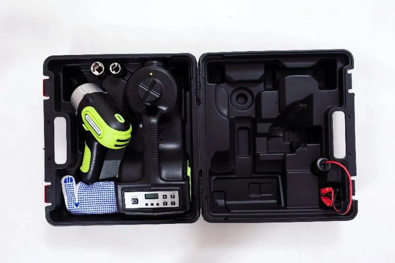 Φορητό Κρουστικό Κλειδί: Το σετ περιλαμβάνει ένα φορητό, εργονομικά σχεδιασμένο ηλεκτρικό κρουστικό κλειδί με δύο μανίκια διαφορετικών μεγεθών, που ταιριάζουν σε περισσότερα οχήματα. To ενσωματωμένο αλφάδι βοηθά στον σωστό προσανατολισμό κατά την εργασία.