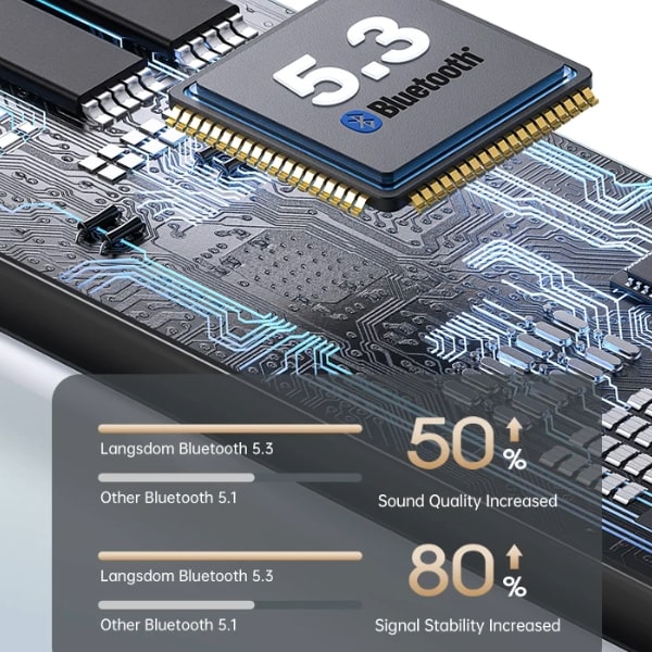 Διπλή λειτουργία: Εξοπλισμένα με προηγμένη τεχνολογία Bluetooth 5.3, αυτά τα ακουστικά προσφέρουν λειτουργίες παιχνιδιού και μουσικής. Μεταβείτε στη λειτουργία παιχνιδιού για να βιώσετε μια εξαιρετικά χαμηλή καθυστέρηση μόλις 45 ms, ιδανική για παιχνίδι χωρίς καθυστερήσεις.