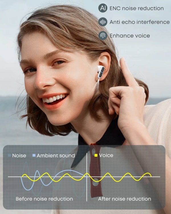 Βελτιωμένη εμπειρία ομιλίας και ήχου: Η ενσωματωμένη τεχνολογία ENC (Environmental Noise Cancellation) μειώνει τον θόρυβο του περιβάλλοντος, διασφαλίζοντας καθαρές και αδιάλειπτες τηλεφωνικές κλήσεις. Με προσαρμοσμένα ηχεία υψηλής ευαισθησίας 10 mm, αυτά τα ακουστικά προσφέρουν ενισχυμένα μπάσα και ήχο με πλήρες σώμα για μια καθηλωτική εμπειρία ήχου.